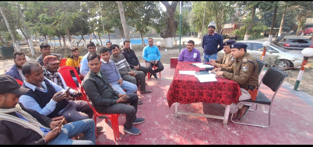 डीजे संचालकों के साथ बैठक में थानाध्यक्ष व पुलिस निरीक्षक।